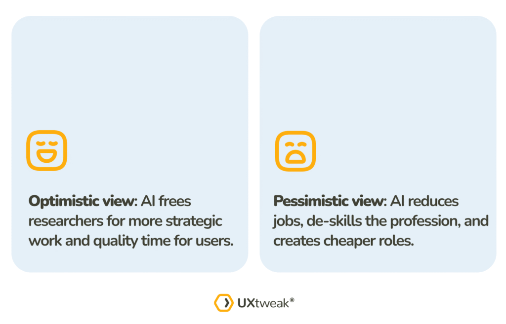 When looking at the experts’ predictions, we identified 2 distinct perspectives on AI’s trajectory in UX research, and the disagreement itself tells a story.