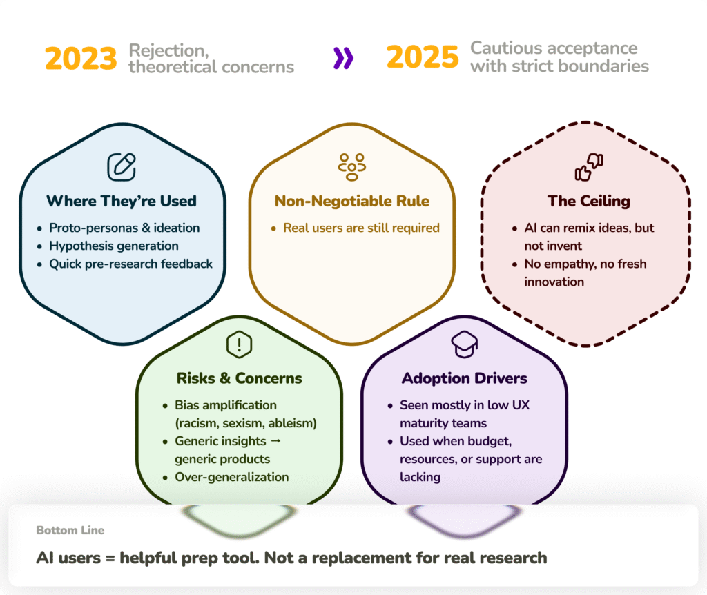 Two years transformed the conversation on AI-based users from wholesale rejection to cautious, conditional acceptance with clear boundaries. While 2023 responses focused on theoretical concerns, 2025 brought empirical evidence.