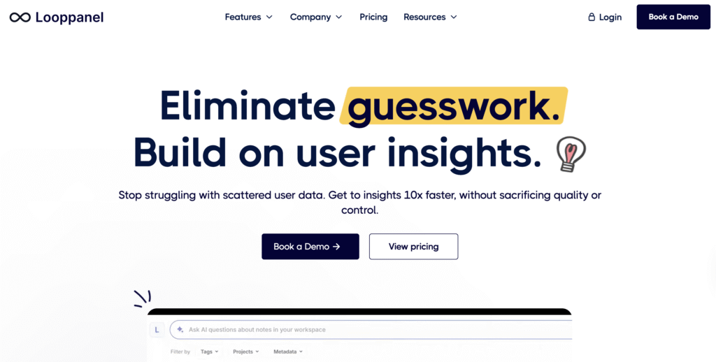 Looppanel combines a research repository with AI‑enabled features such as automatic transcription, theme detection, and smart search across recorded interviews and feedback. It supports live note‑taking and shareable insights.