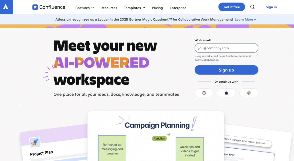 Confluence isn’t a research repository per se, but it’s widely adopted as a central knowledge workspace where research outputs, decisions, and documents live in a structured, searchable way. Pages, databases, and templates let teams construct a shared research repository that scales.