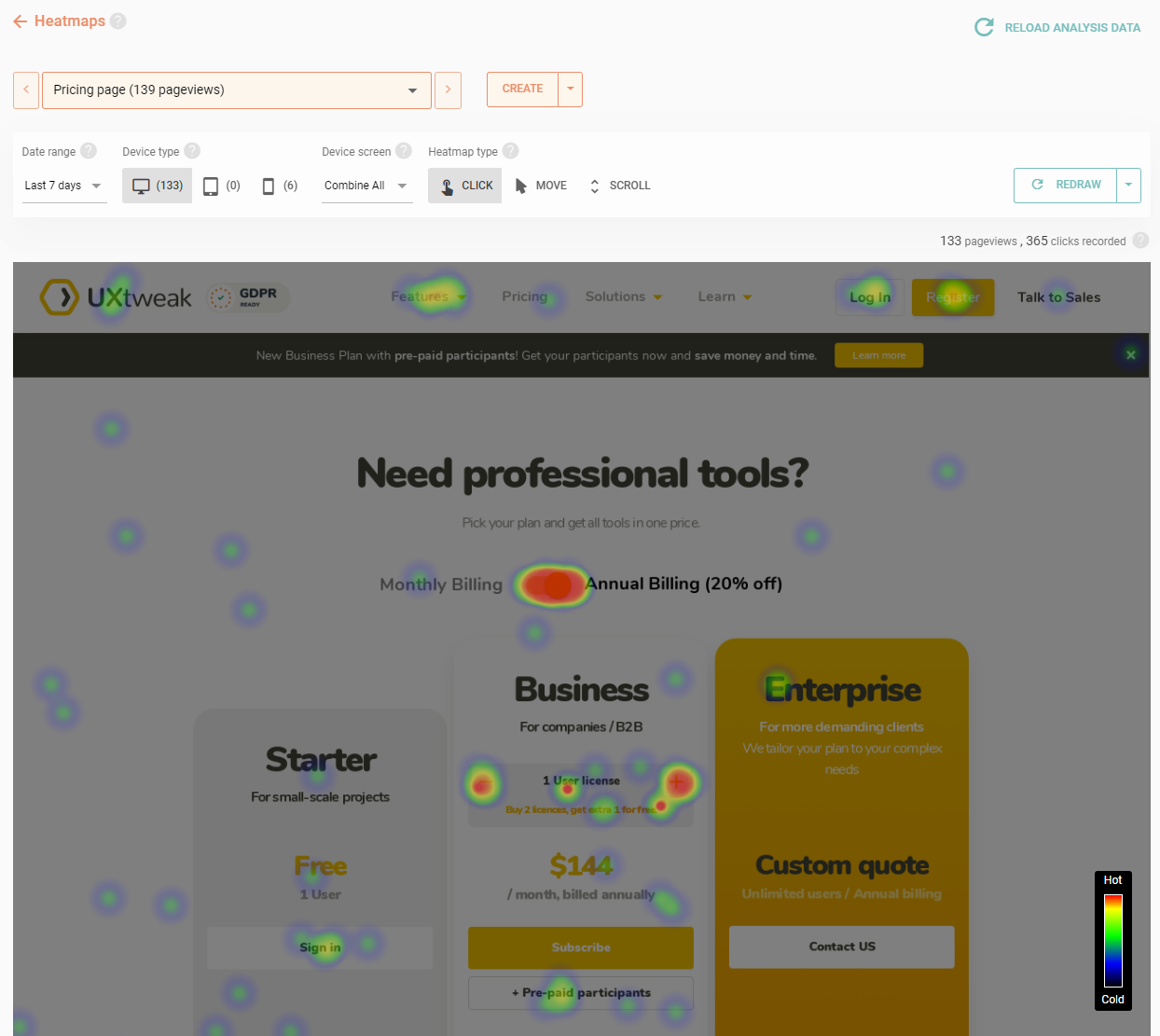 You can generate heatmaps like this together with session replays using UXtweak’s Session Recording Tool. Record and watch how users navigate your product, and easily spot where they face issues! 🐝