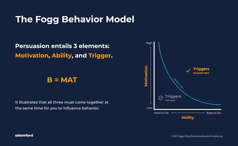 📌 Example: The AIDA model (Attention, Interest, Desire, Action) explains how users move from curiosity to conversion. Meanwhile, Fogg’s Behavior Model suggests that behavior occurs when motivation, ability, and a prompt coincide.