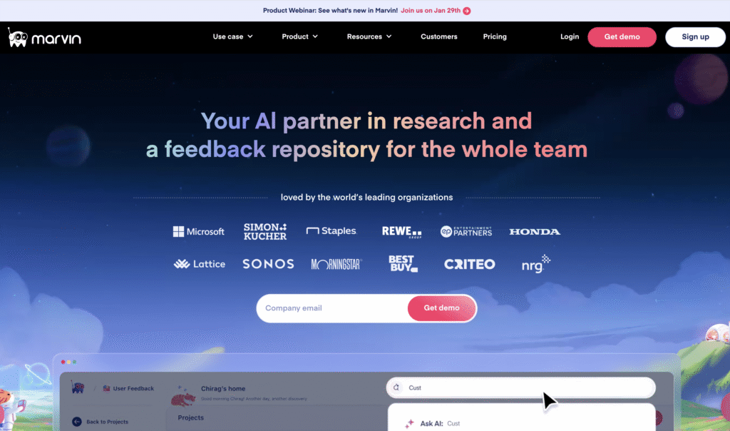 Marvin positions itself as an AI-powered alternative to Dovetail, focusing on automating parts of synthesis and pattern detection. It appeals to teams experimenting with faster analysis workflows.