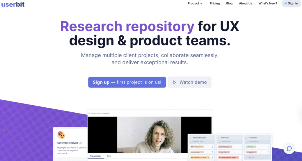 Userbit is a well-known Dovetail alternative that emphasizes linking insights directly to research evidence. It supports interviews, notes, and observations while keeping findings structured and defensible.
