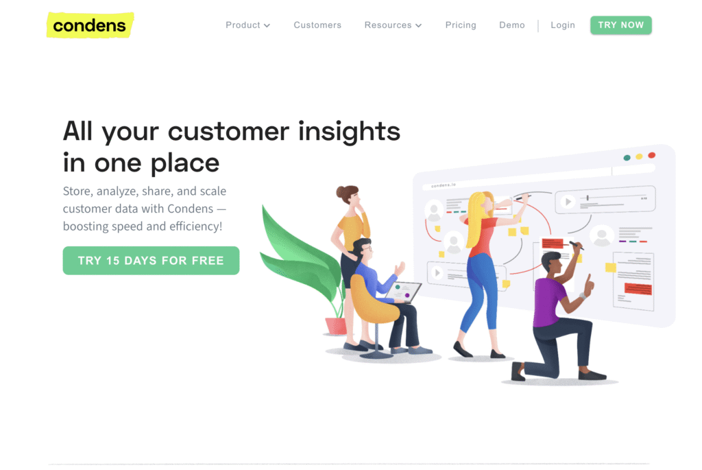 Condens is a strong alternative for teams that want to move beyond raw transcripts and work with structured, reusable insights. It supports tagging, clustering, and synthesis across interviews and studies, making it easier to identify patterns and build insight libraries over time. This makes Condens a good fit for teams that want research findings to stay visible and useful beyond a single project.