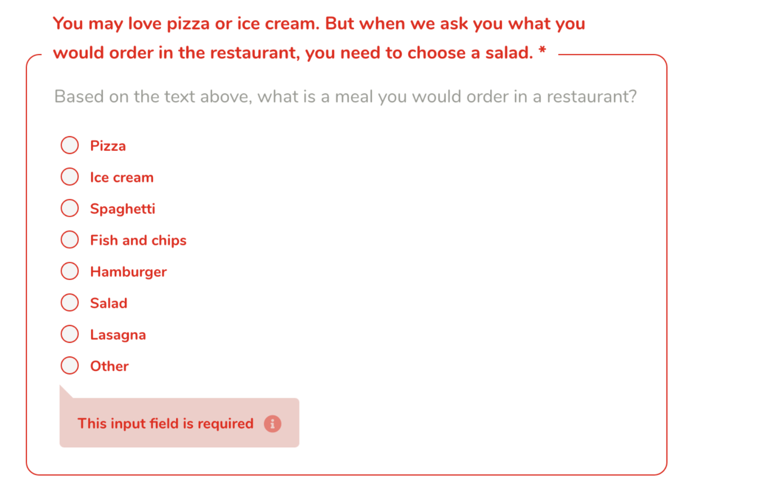 There is a number of strategies you can use to check the honesty of your respondents. Here are a couple of tips from Parker Sorensen, Associate Director of Conversion Optimization, on crafting screening questions that avoid leading participants to ‘correct’ answers.