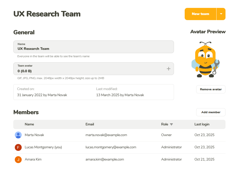 We’ve also completely revamped the Team Management section in UXtweak, giving it a fresh visual upgrade and a more intuitive layout. The new design improves usability and overall smoothness, making it easier to navigate and manage teams, team members and their roles. These changes aim to make collaboration within larger organizations feel more seamless and enjoyable.