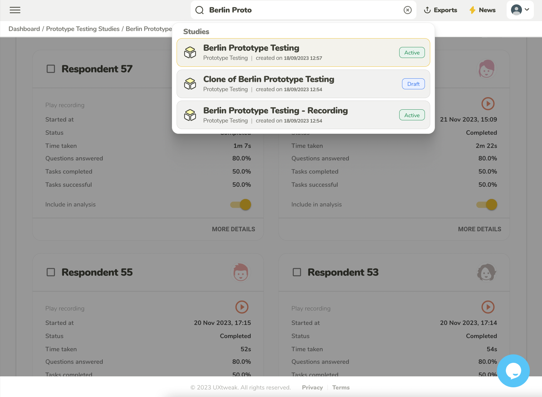 The UXtweak Dashboard received a refreshed and more modern look, with significantly improved tool-wide search section, redesigned study results section, as well as brand-new navigation header to make navigation throughout UXtweak as seamless as possible.